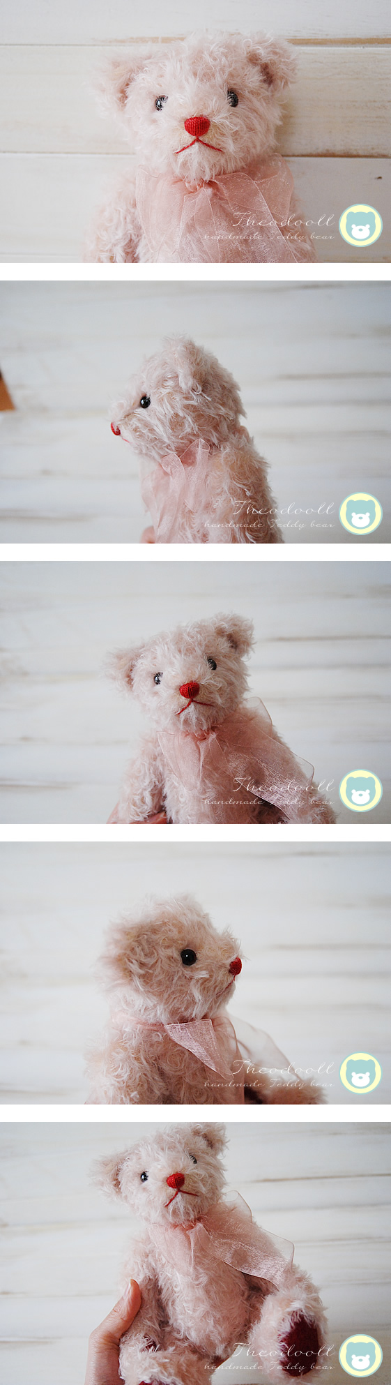 ラティニティモヘア、ハードボードジョイント、プラスチックアイ、柄入フェルト、ガラスペレット、テディベア用綿、オーガンジーリボン